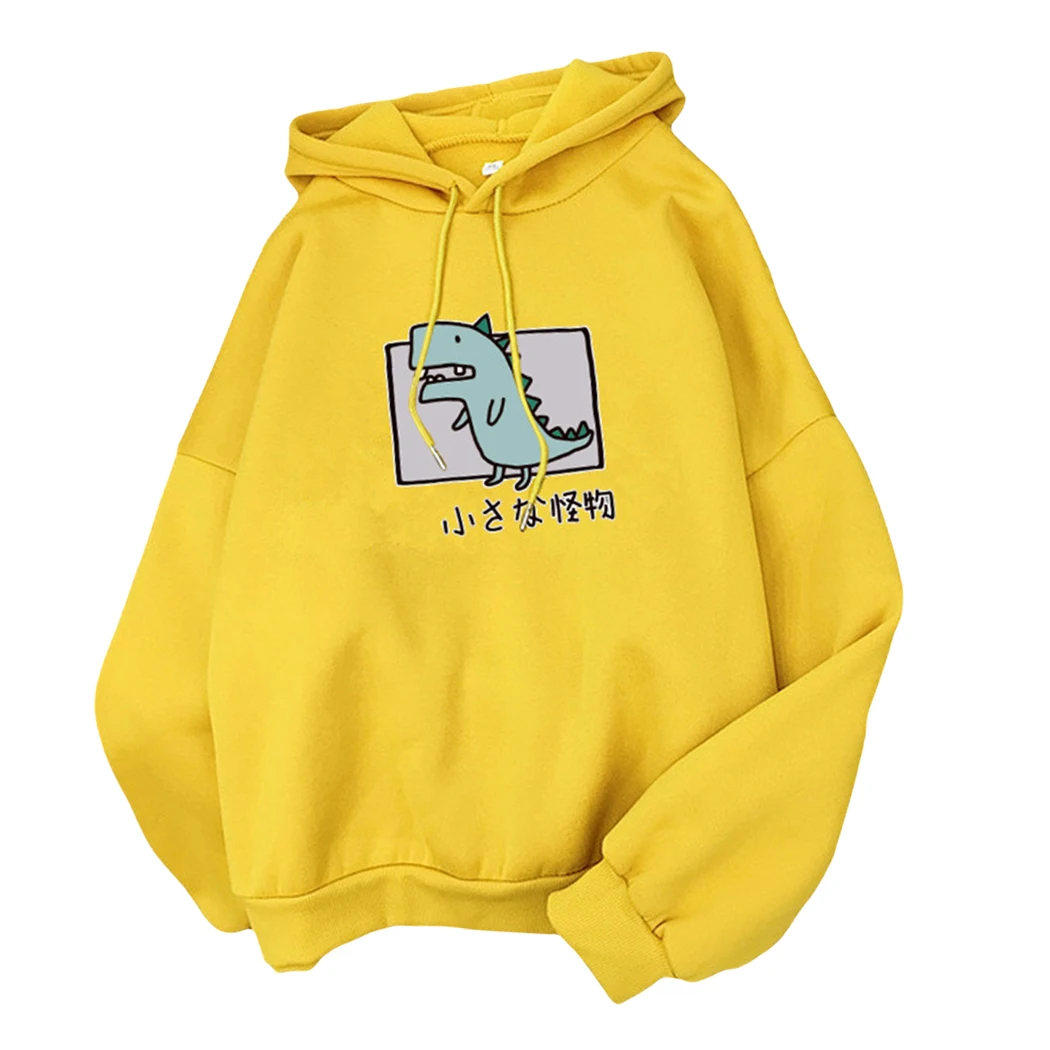 Модные толстовки с капюшоном мультипликационным принтом динозавра Harajuku Женская - купить