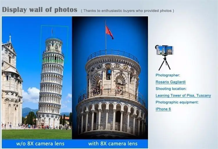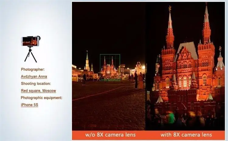 Отзывы о Набор объективов для камеры телефона 8X Telephoto Zoom Lentes + зажимы штатива