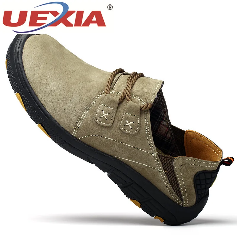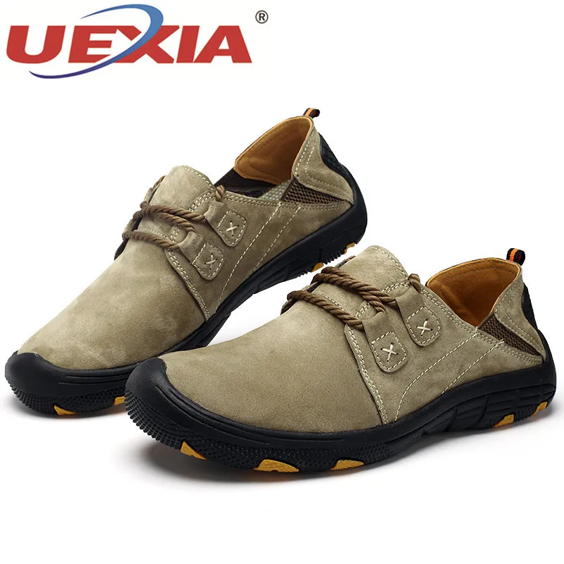 UEXIA Handmade Suede Leather Casual Shoes Men Loafers Breathable Non-slip Outdoor Training Walking Zapatos Sneakers Обувь - купить