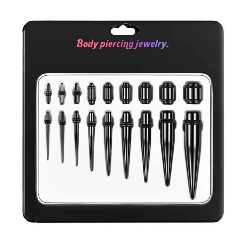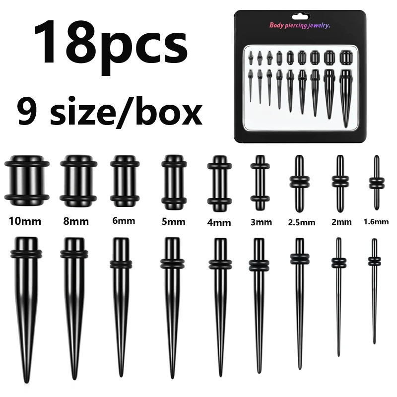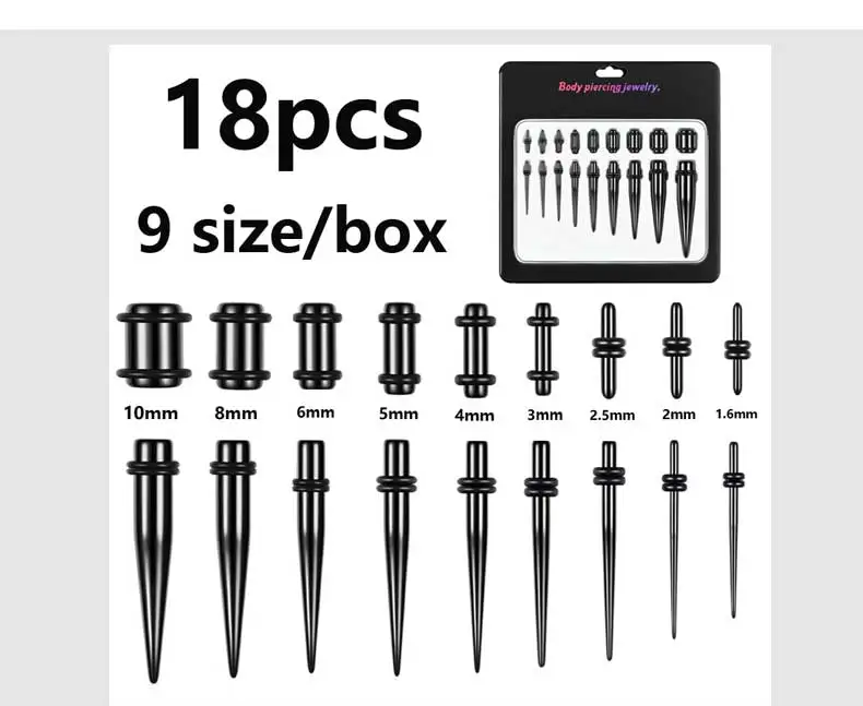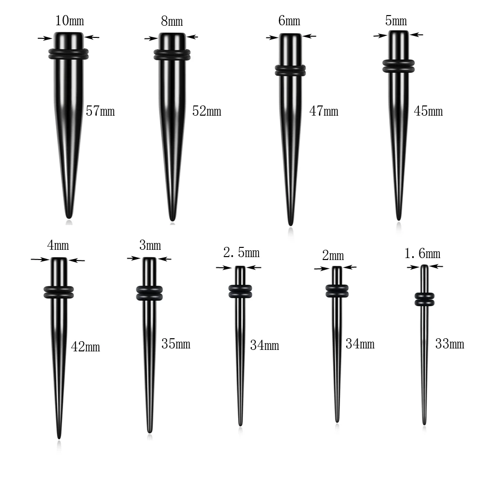 Набор черных акриловых сережек для Пирсинга Ушей с конусной заглушкой - купить