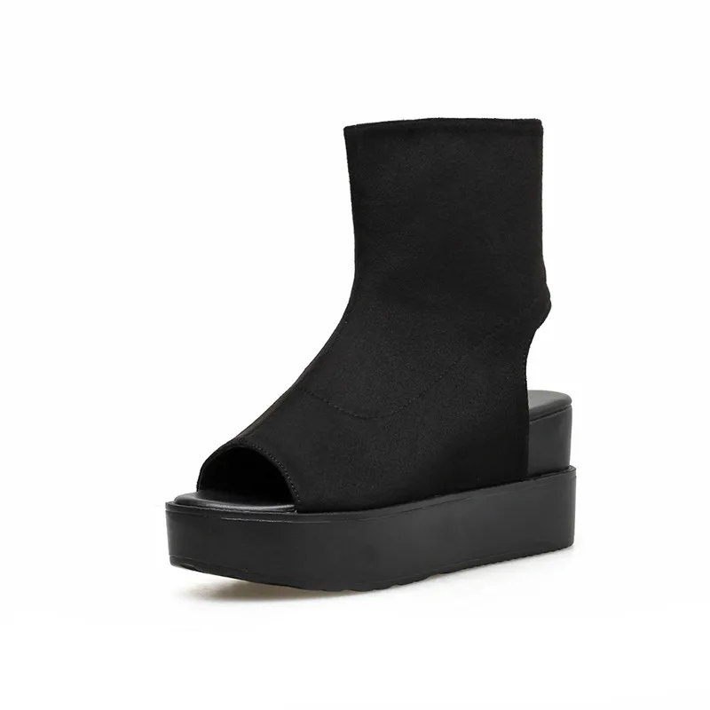 AIYKAZYSDL Women Peep Toe Ankle Boots Faux Suede / Leather Thick Sole Bottom Platform Wedge Shoes Bootie Gladiator Sandals Обувь - купить