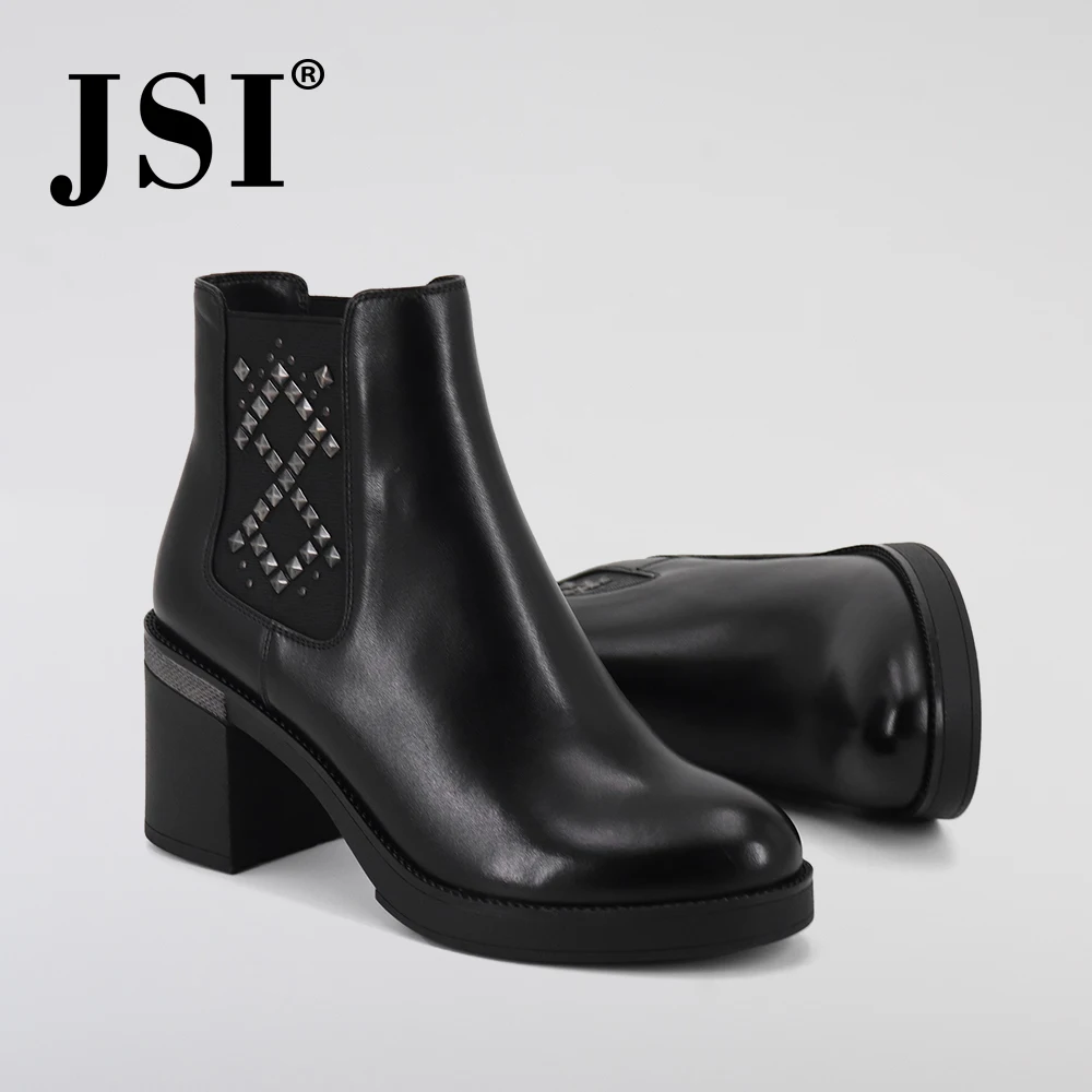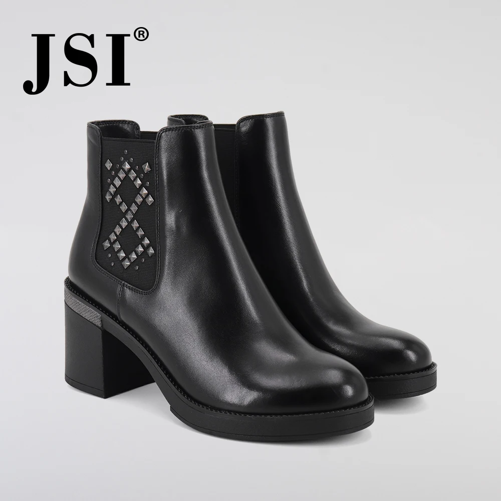 JSI/женские ботинки; Обувь ручной работы до середины икры на квадратном каблуке с круглым носком и принтом; Зимние женские сапоги на высоком каблуке из натуральной кожи на молнии; JC350