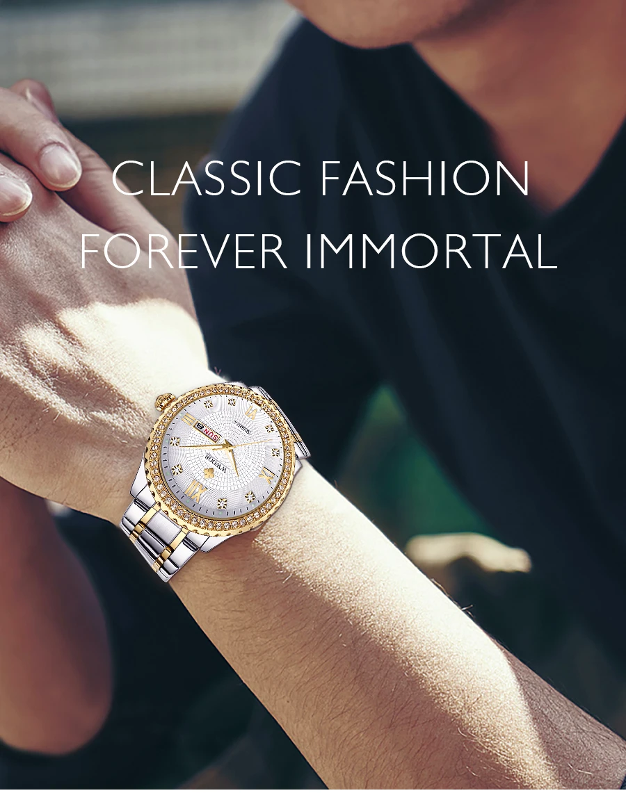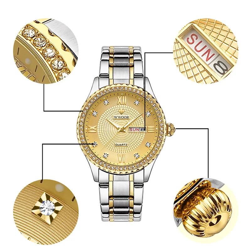 Отзывы о Мужские золотые часы со стразами мужские WWOOR 8856 из нержавеющей стали с