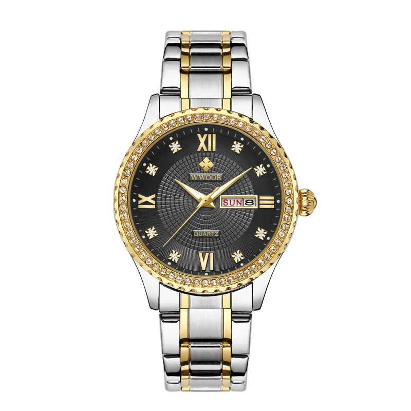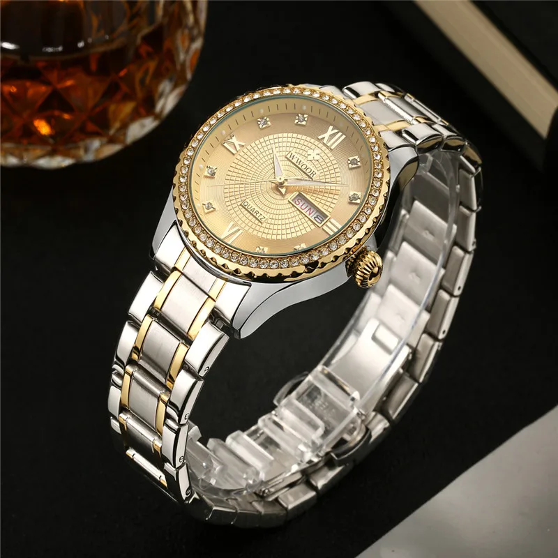 Мужские золотые часы со стразами мужские WWOOR 8856 из нержавеющей стали с - купить