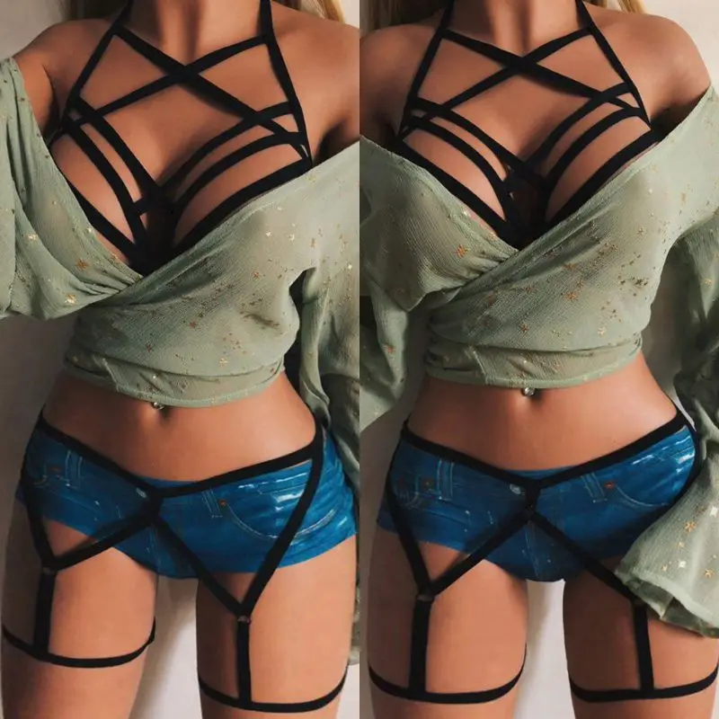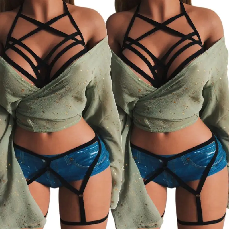 Комплект из 2 предметов: бюстгальтер + трусики-стринги, соблазнительная портупея для тела с вырезами, подчеркивающая вашу сексуальную и очаровательную фигуру.