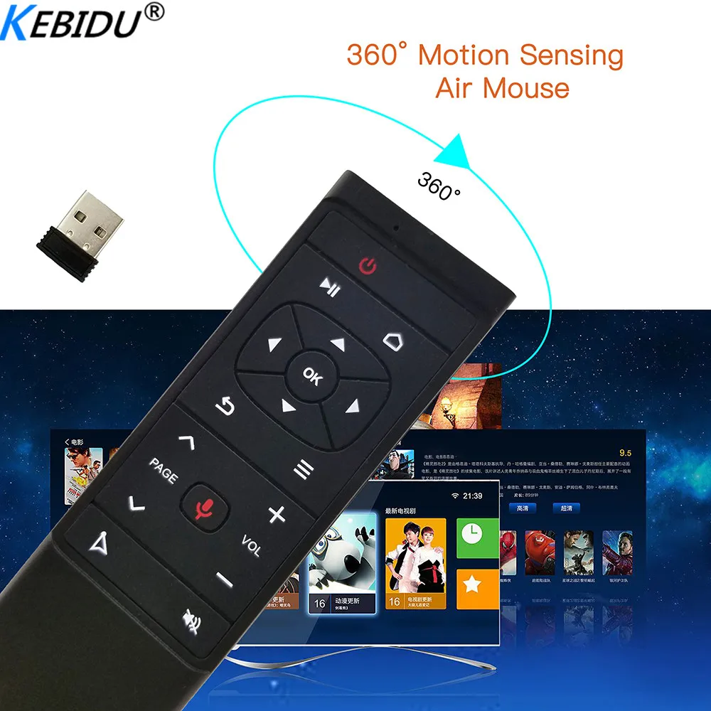 Общее описаниеЭто воздушная мышь со встроенным осевым гироскопом, датчиком ускорения силы тяжести и голосовым входом; Она может выполнять функции традиционного пульта дистанционного управления, компьютерной мыши и игрового контроллера движения на платформе android. Микроприемник Plug and play совместим с персональным компьютером, проектором, ТВ-приставкой, домашним кинотеатром и т. д.