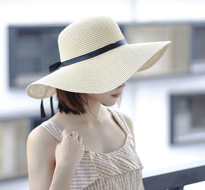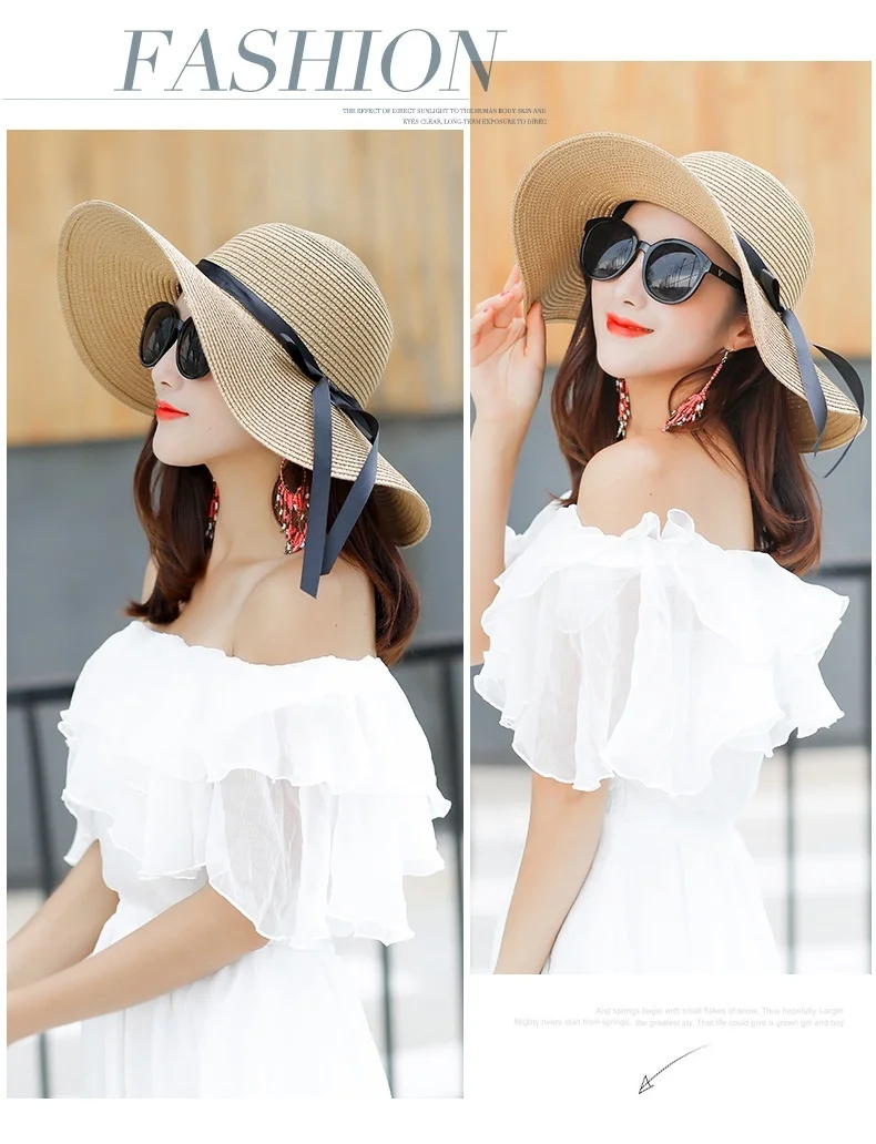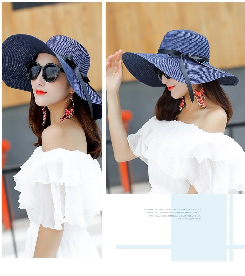 Летняя уличная пляжная Солнцезащитная шляпа Бохо с широкими полями бантик - купить