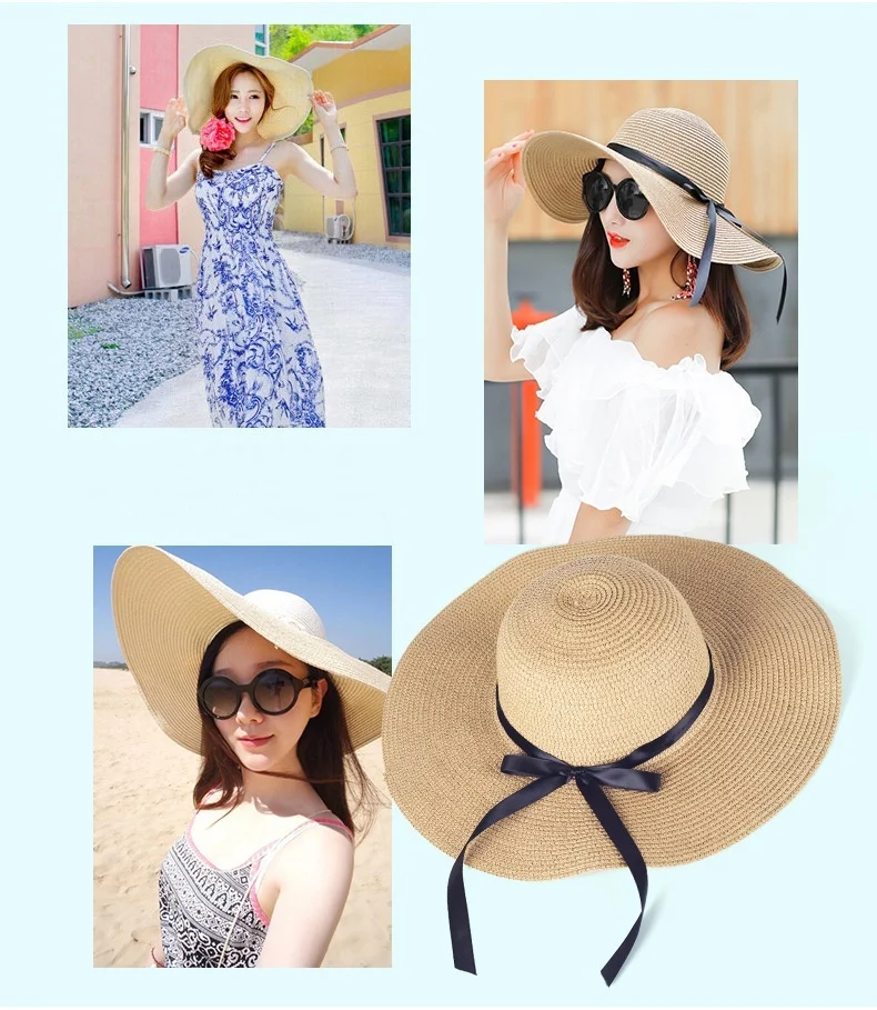 Отзывы о Летняя уличная пляжная Солнцезащитная шляпа Бохо с широкими полями бантик