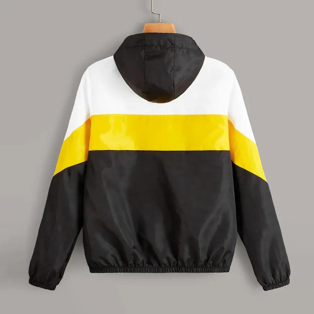 Женское лоскутное тонкое пальто с длинным рукавом, с капюшоном, на молнии, повседневное спортивное пальто