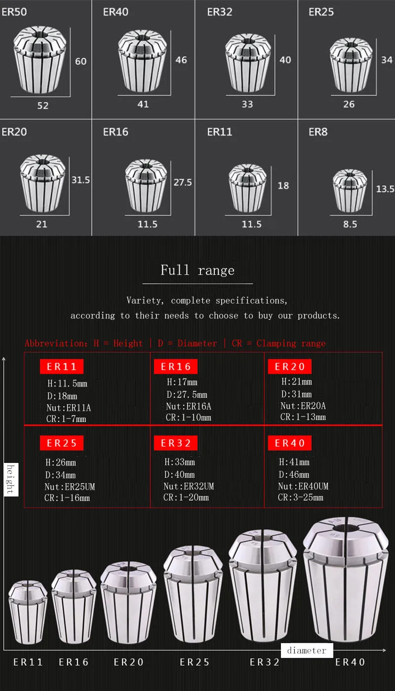 Описание: Материал: пружинная сталь 65Mn Точность: 0,015 мм Бренд: драхм Особенности продукта: эластичный зажим режим, сильная сила зажима, может зажим 1,5 мм диаметр фрезы. Область применения: сверлильный станок, фрезерный станок, токарный станок, ЧПУ, гравировальный станок,