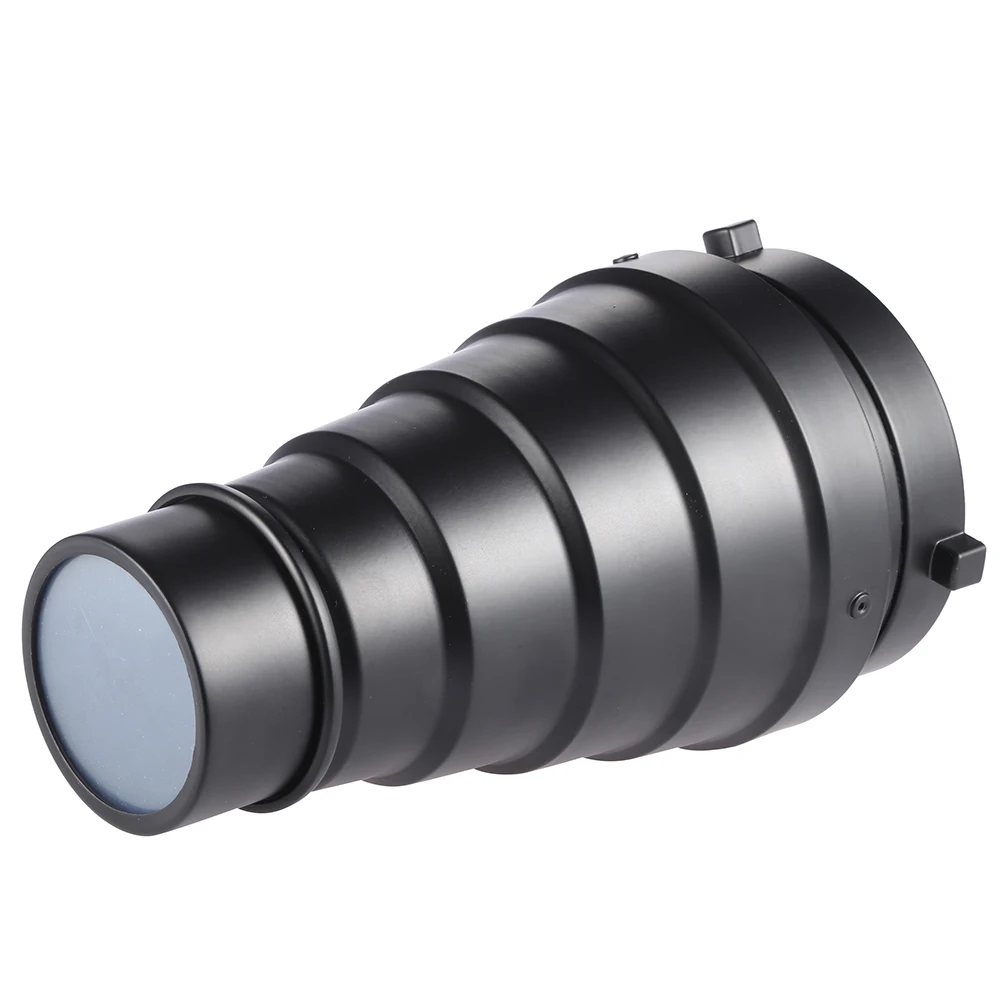 Этот снут изготовлен из высококачественного алюминиевого сплава, более прочный и легкий. Это поможет вам сфокусировать светильник и точить детали продукта. Пять цветовых фильтров (прозрачный, красный, зеленый, синий и желтый) создают эффекты при разных цветовых температурах. Идеально подходит для студии