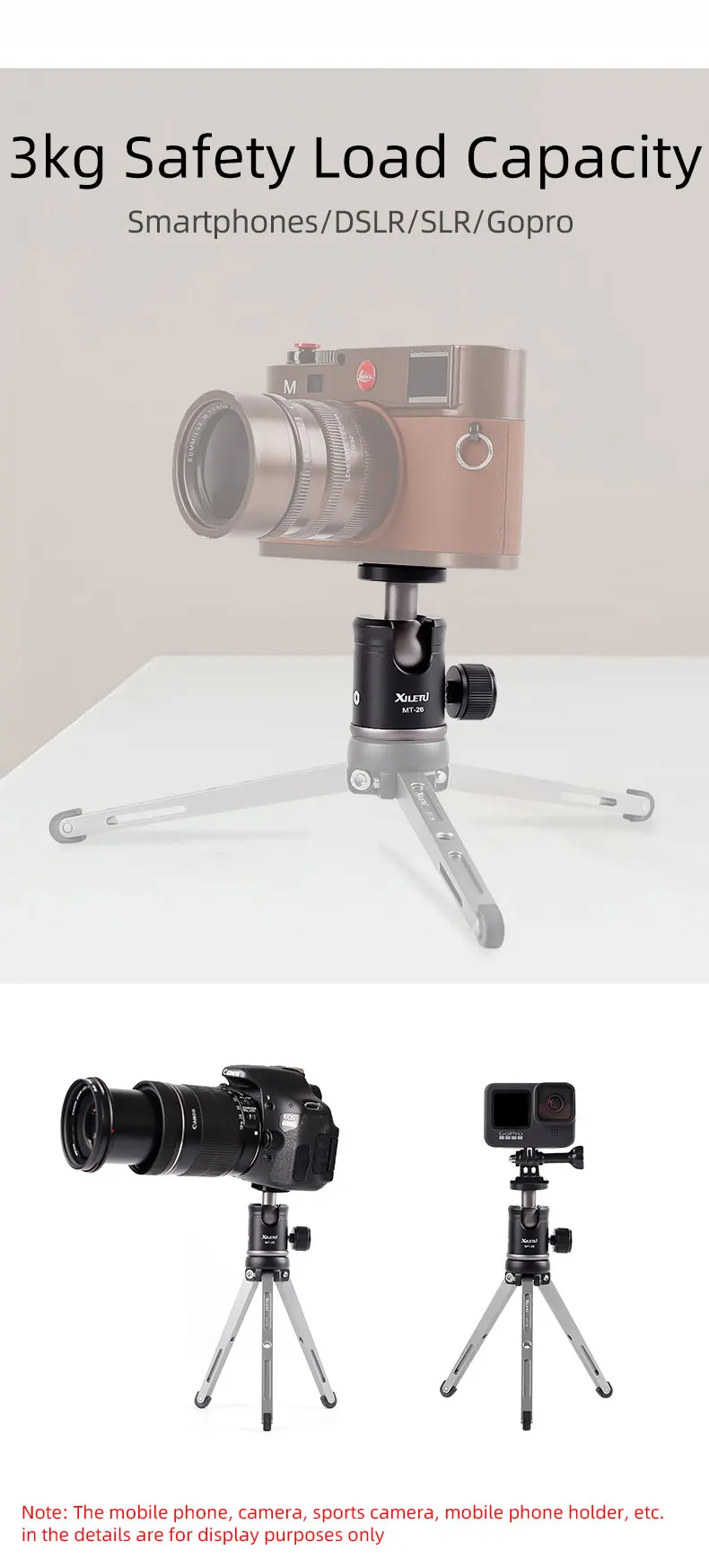 Отзывы о Алюминиевый металлический мини штатив XILETU MT26 с поворотной головкой на 360