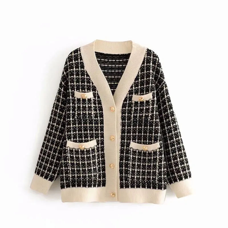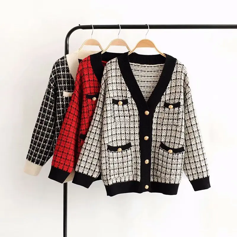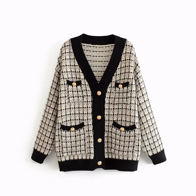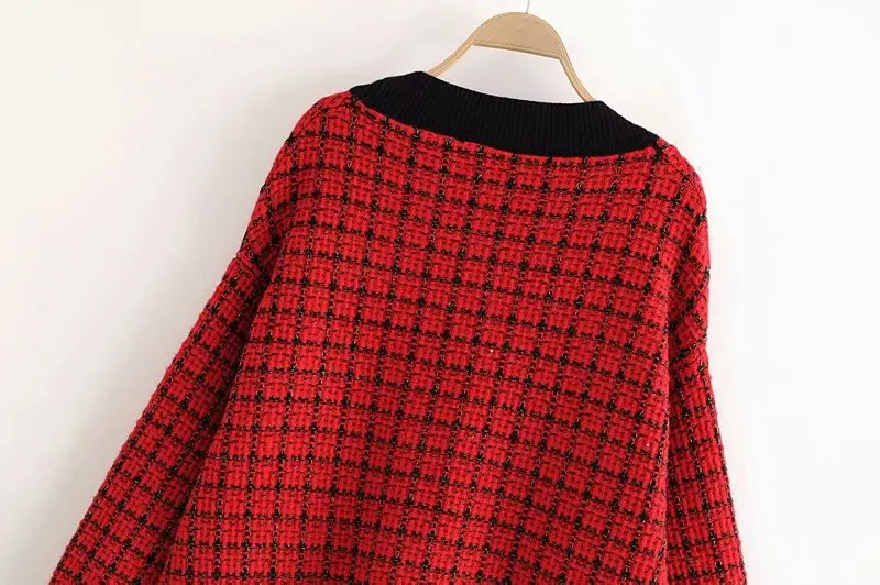 Отзывы о Женский свитер куртка 2019 негабаритных вязанных кардиганов свободные клетчатые