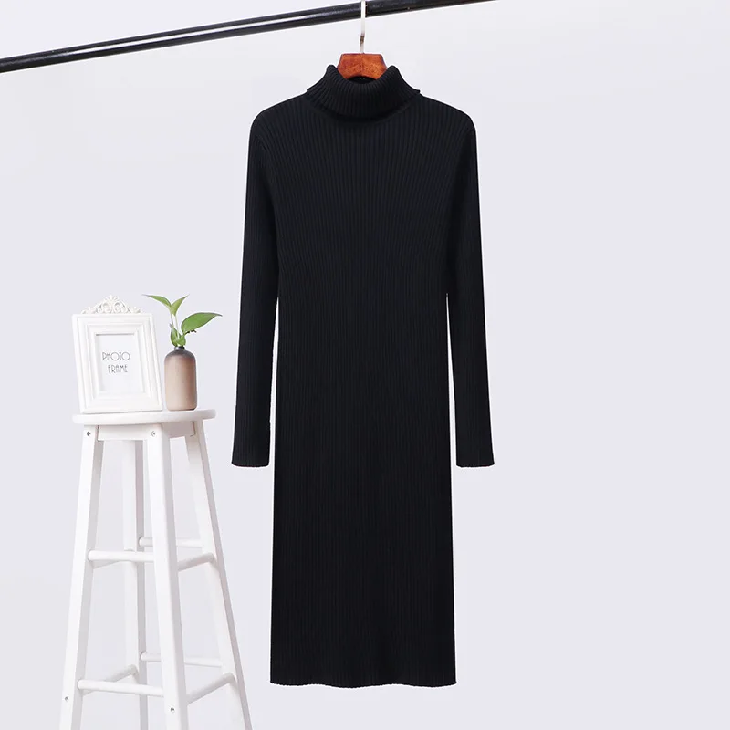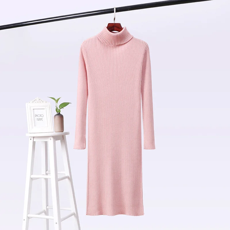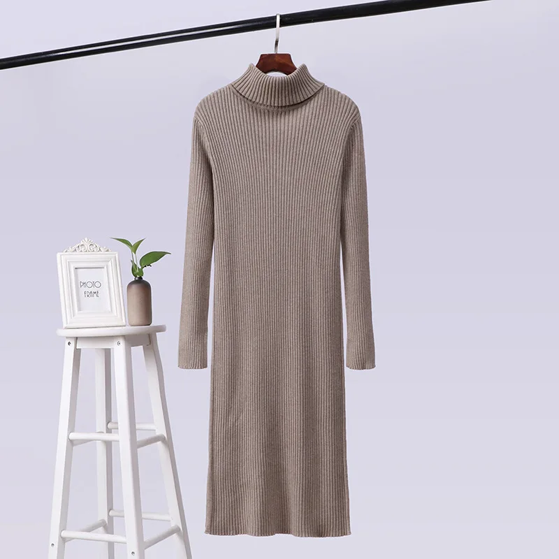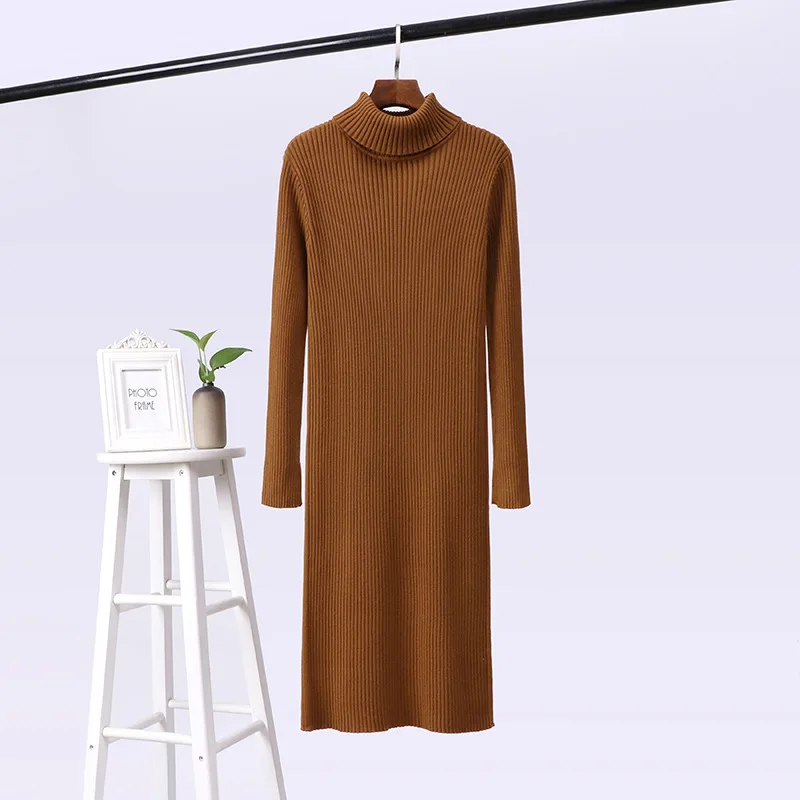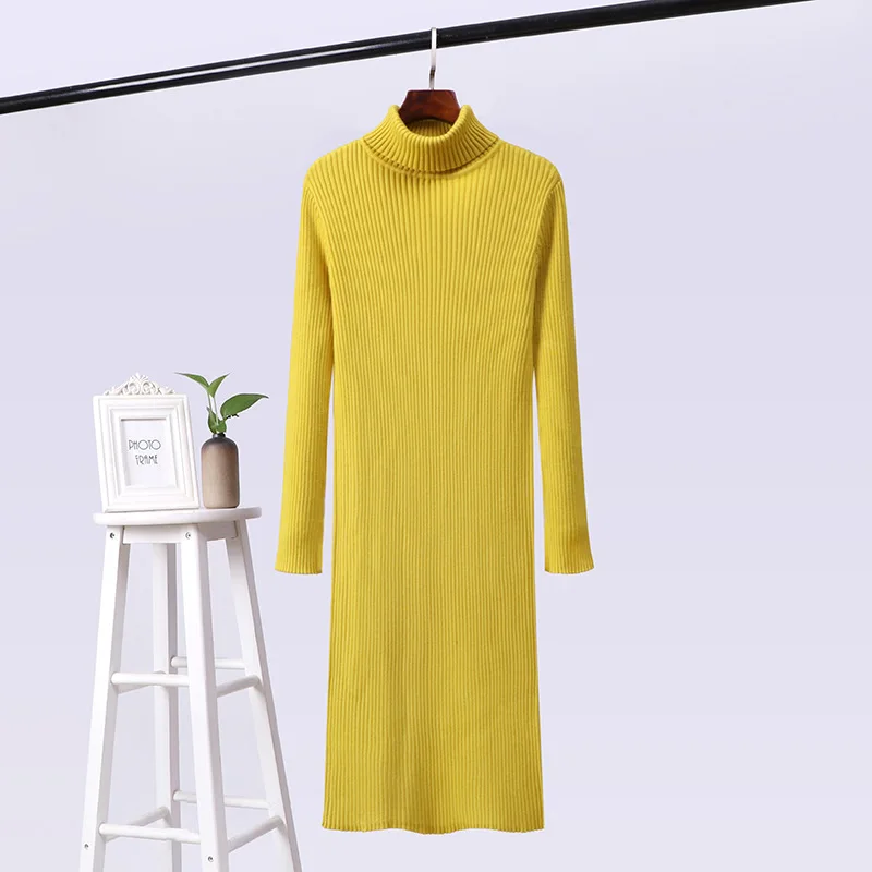 Отзывы о Женское трикотажное платье-джемпер с высоким воротником длинный свитер желтого