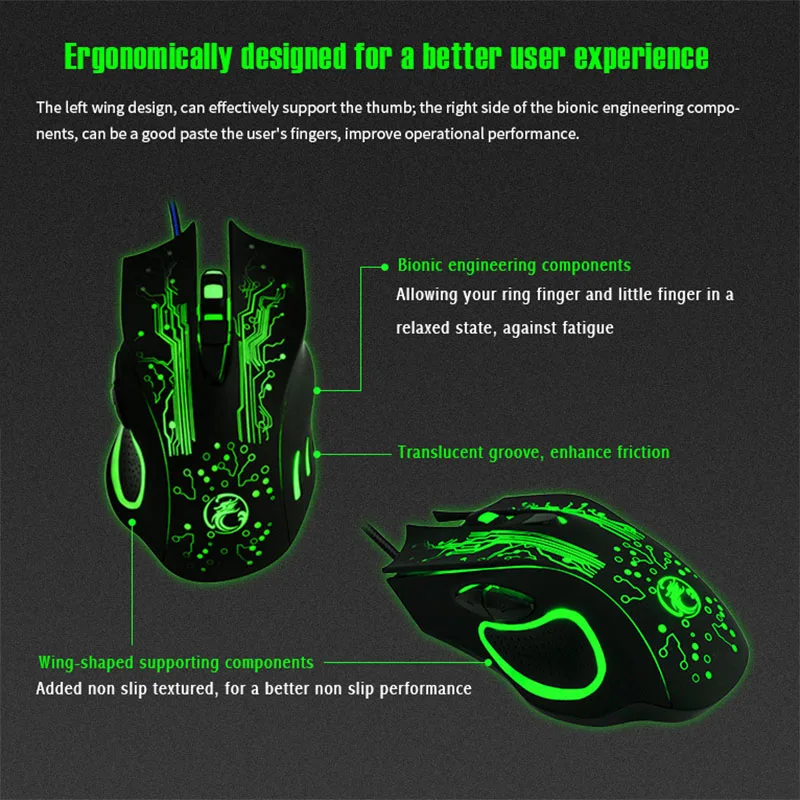 Особенности:1.Светодиодный Проводная Оптическая USB мышьДля улучшенной производительности игрового класса с быстрой реакцией.