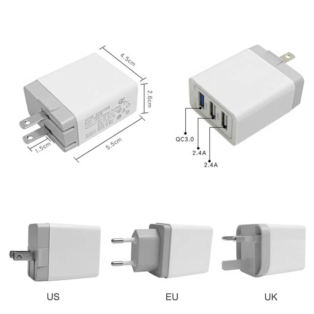 QC 3,0 настенное зарядное устройство Быстрая зарядка 3 порта USB адаптер питания US/EU/UK Разъем LHB99