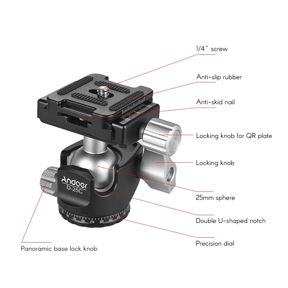 Купить Мини-штатив Andoer с ЧПУ из алюминиевого сплава шаровой головкой и двойным вырезом