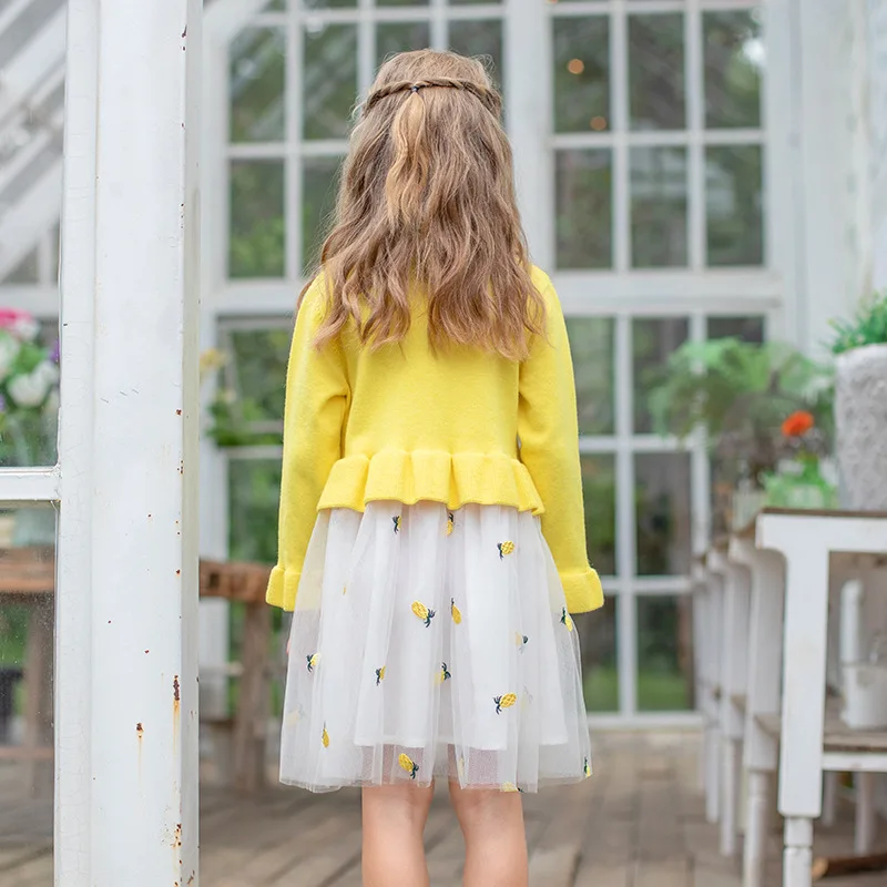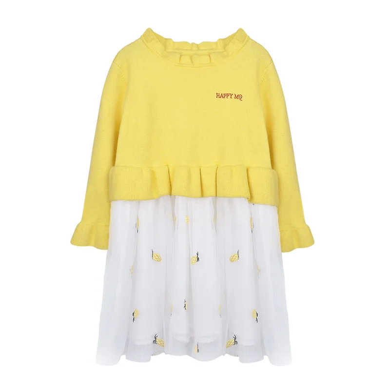 Новое осеннее платье для девочек коллекция 2019 года вязаное Сетчатое бальное - купить