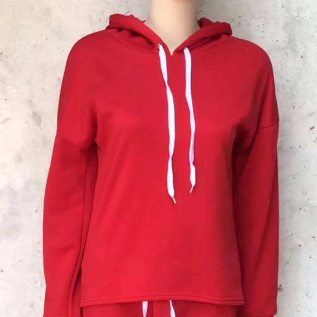 Купить 2 шт./компл. женский Однотонный свитер с капюшоном и штаны спортивный костюм