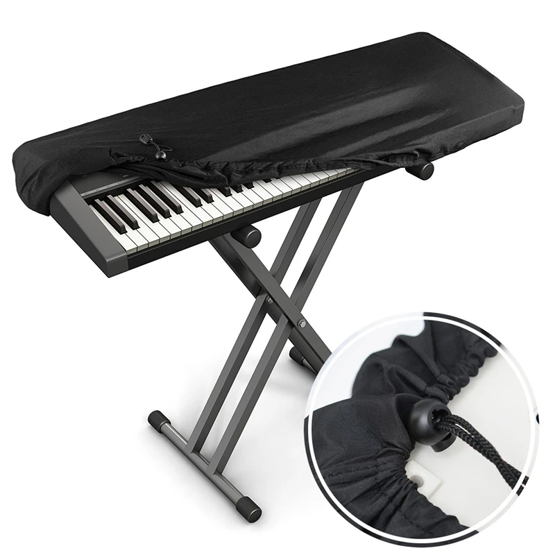 Регулируемый шнур позволяет плотно прилегать к пианино и удерживать насекомых и влагу.