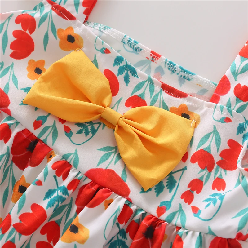 Новинка 2019, милое платье в цветочек без рукавов с бантом и оборками!