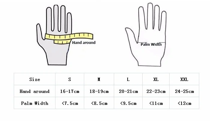 2XL: Hand circumference :24-25 cm, palm width :12cm