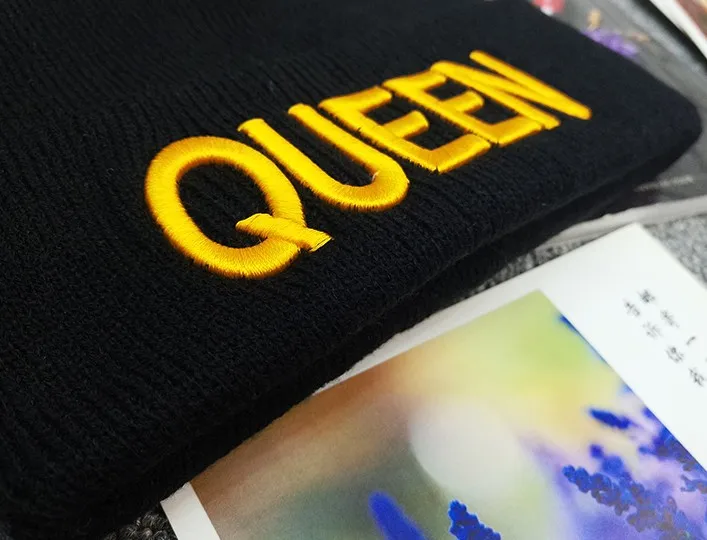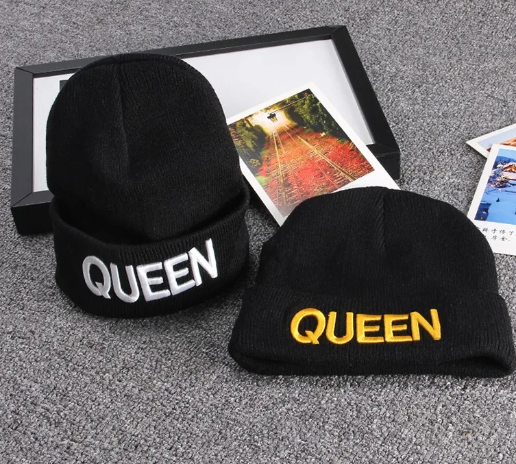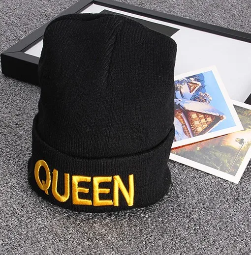 Черная вязанная Повседневная зимняя модная шапка King queen Мужская и женская пара - купить