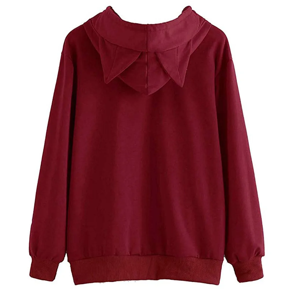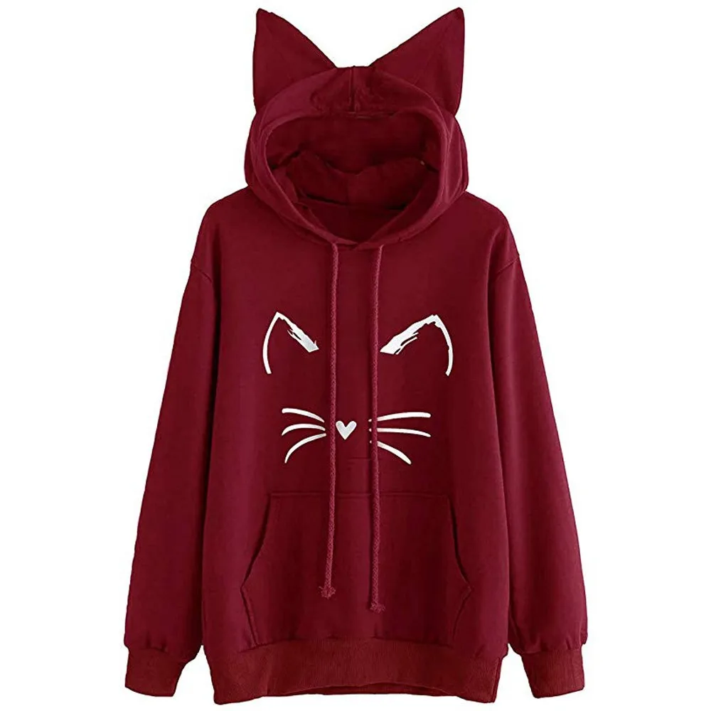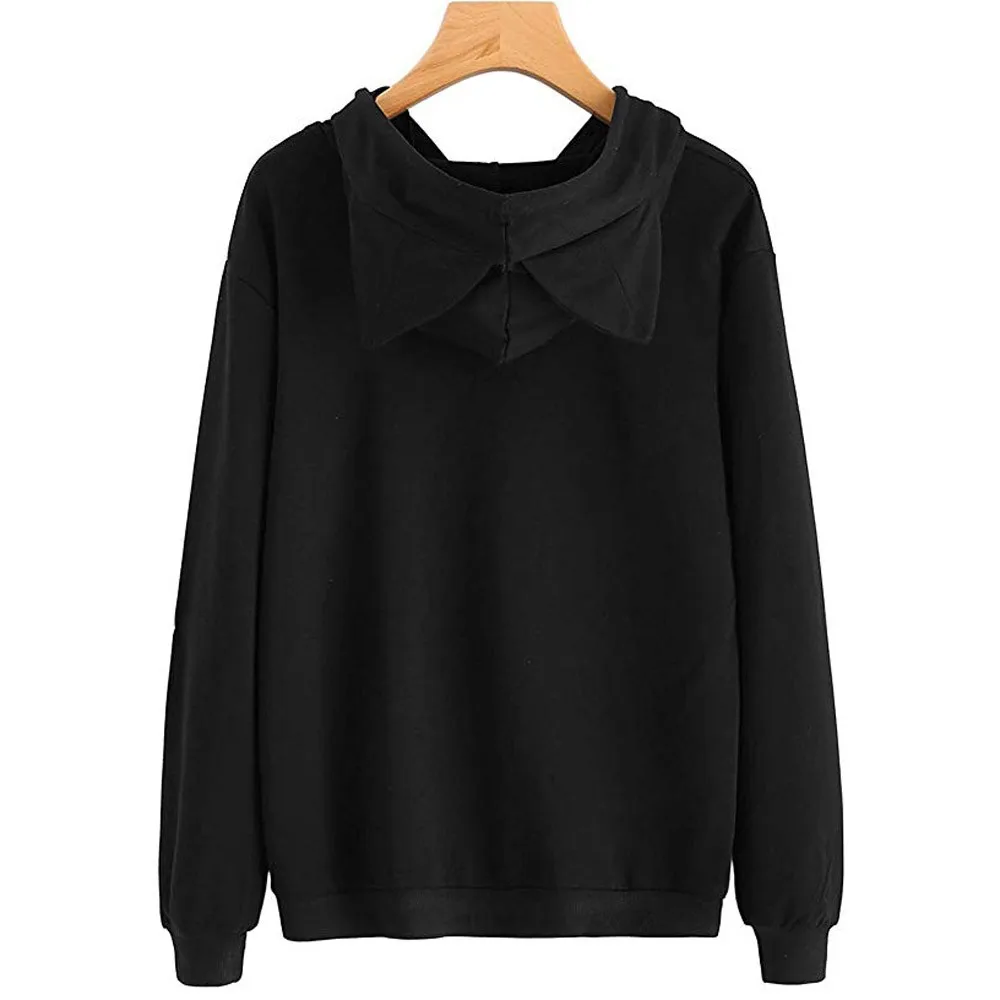 WОднотонная толстовка с капюшоном с длинными рукавами и кошачьими ушками; Пуловер с капюшоном; Блузка