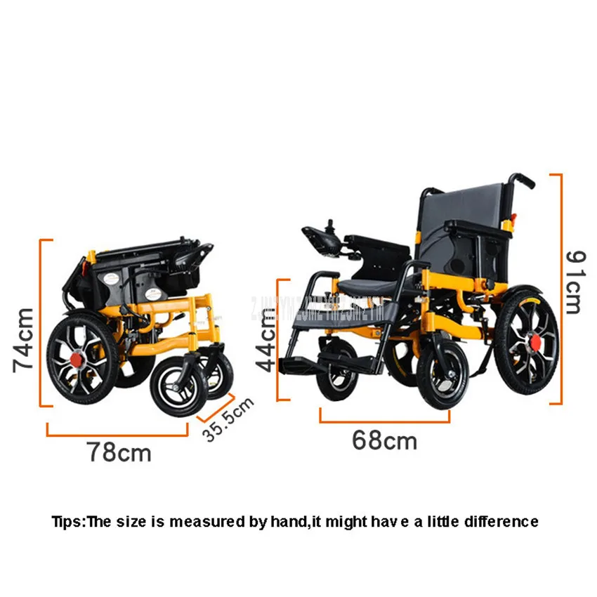 Характеристики: Название: интеллектуальная полностью автоматическая складная КоляскаНапряжение зарядного устройства: 220 В 50 Гц/110 В 60 Гц (опционально)Мощность двигателя: 500 Вт (250 Вт * 2 двойной двигатель) Тип батареи:24V 12AH свинцово-кислотные Батарея/24V 20AH свинцово-кислотные Батарея (опционально) Максимальный Пробег: (в зависимости от веса, состояния дороги, скорости, погоды и других факторов)24V 12AH свинцово-кислотная батарея: около 10 км24V 20AH свинцово-кислотная батарея: около 20 км Вес нетто батареи:24V 12AH свинцово-кислотная батарея: около 9 кг, 24V 20AH свинцово-кислотная батарея: около 15 кг Скорость: 0-6 км/ч, 5 передач регулируетсяМатериал оправы: углеродистая стальМатериал ступицы колеса: алюминиевый сплавШирина сиденья: около 50 смПереднее колесо: 10 дюймовЗаднее колесо: 16 дюймовНагрузка-Вес: 200 кгРазмер в разложенном виде: 44*68*91 смРазмер в сложенном виде: 74*78*35,5 см Посылка включает в себя:1 инвалидная коляска с батареей1x зарядное устройство Демонстрация товара: