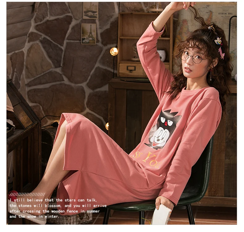 Купить Женские ночные рубашки и хлопковое спальное платье с мультяшным принтом длинная