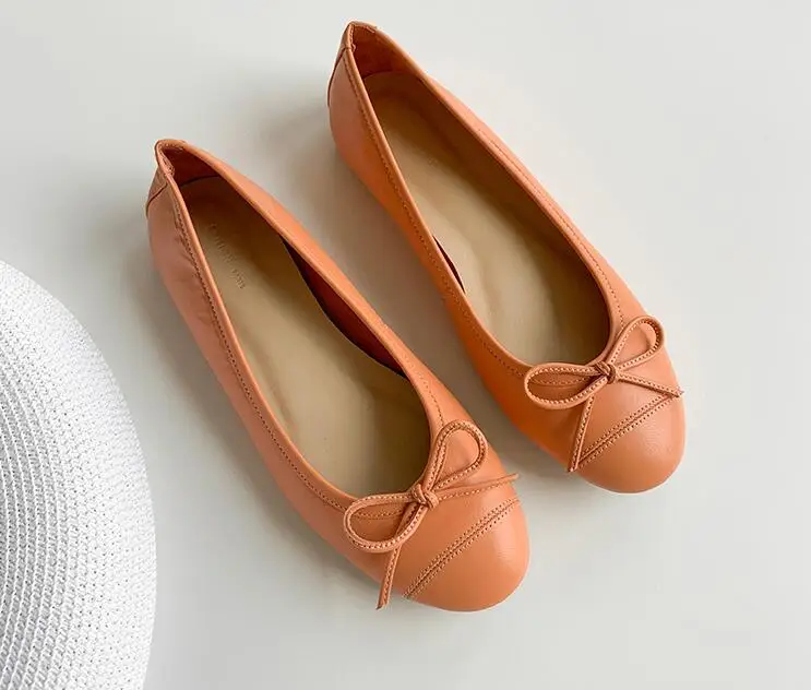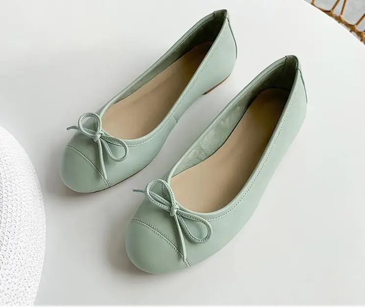 Женская обувь из овечьей кожи; балетки на плоской подошве цвета мороженого; женская обувь с бантом-бабочкой; Женская обувь в горошек с круглым носком