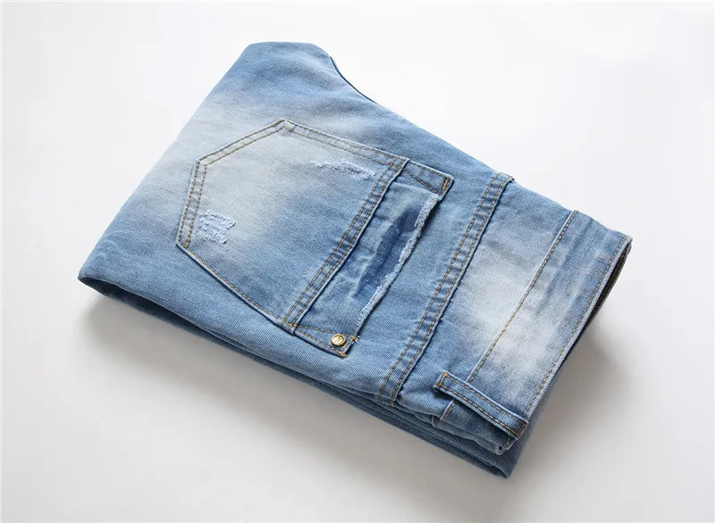 Новые мужские уличные джинсы на пуговицах летние светло-голубые джинсы с дырками мужские джинсы высокого качества мужские хлопковые прямые длинные джинсовые брюки