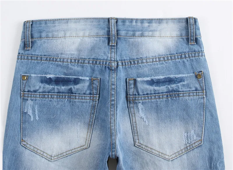 Отзывы о Новые мужские уличные джинсы на пуговицах летние светло-голубые с дырками