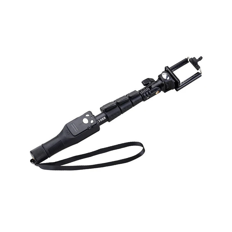 -Оснащен гибким зажимом для телефона, подходит для телефонов шириной от 5,5 см до 8,5 см. -Со съемным дистанционным затвором, совместим с IOS и Android 4,3/новее.