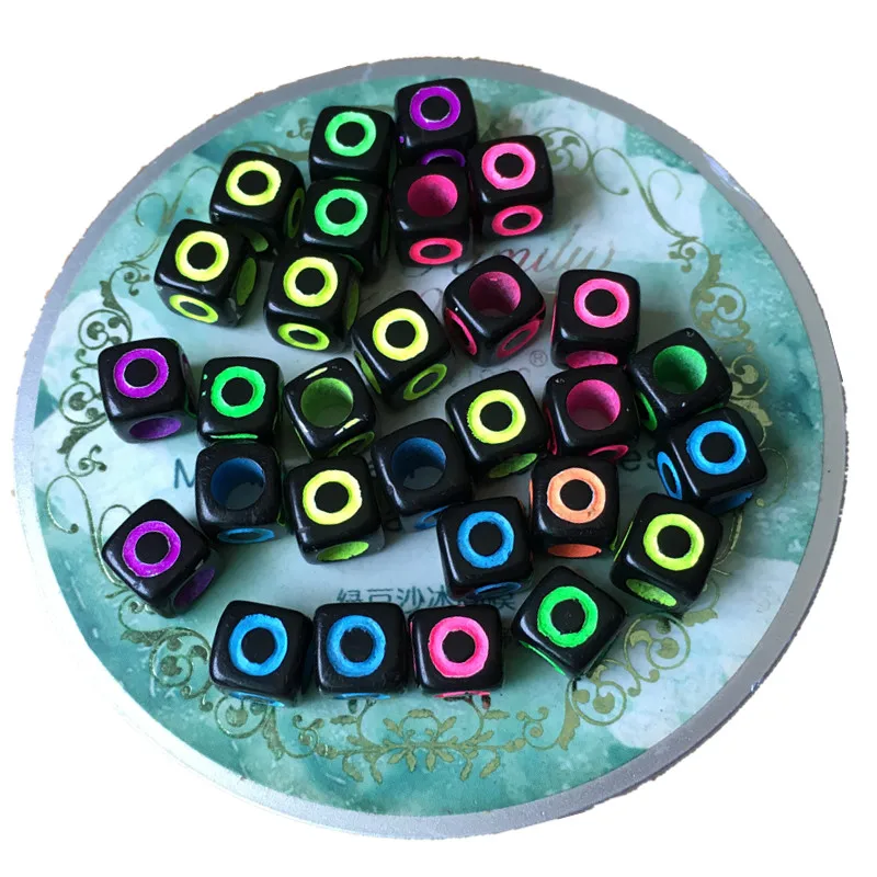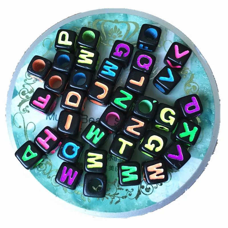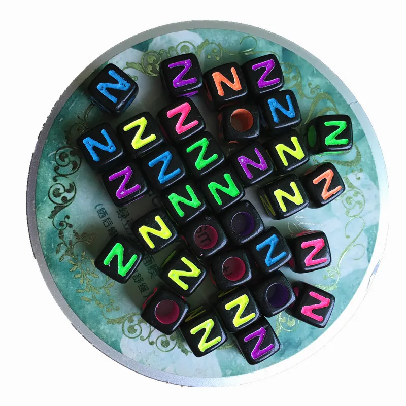 Отзывы о Mini order 100pcs 7*7mm Black with Neon Colors Acrylic Letter Beads Single English Initial N Printing Sqaure Alphabet Jewelry Украшения и