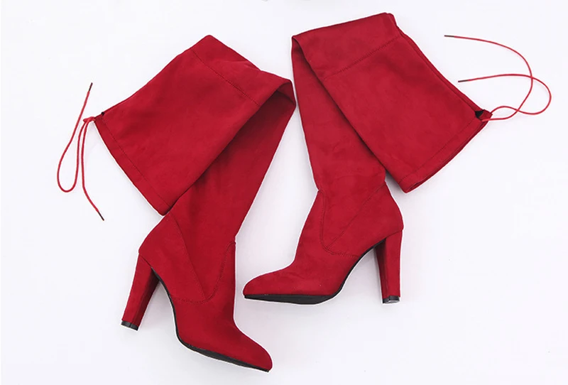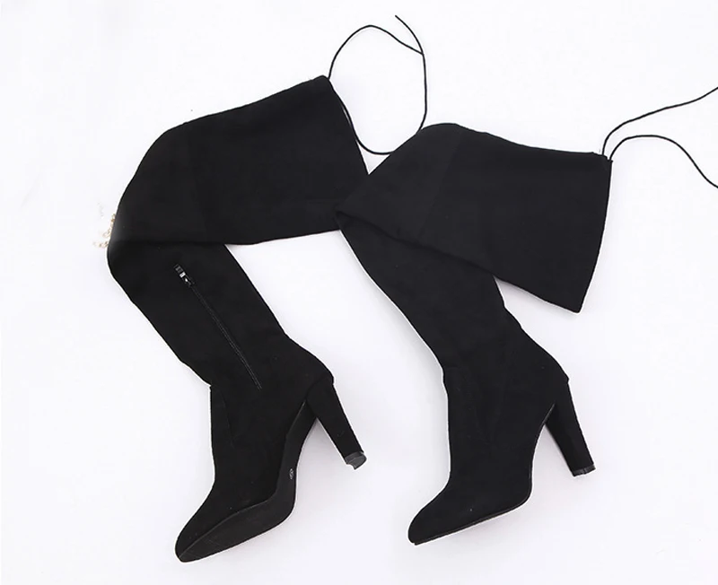 Пикантные Сапоги выше колена женская обувь женская зимняя обувь на шнуровке модные замшевые сапоги до бедра сапоги на высоком каблуке 8 см размер 43