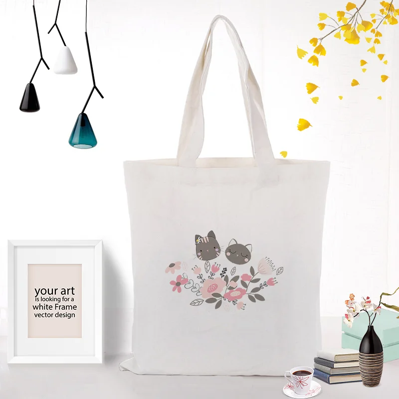 cat Canvas Tote Bag Shopping Custom Print Logo Text DIY Daily Use Eco Ecologicas Handbag Reusable Recycle Багаж и сумки - купить