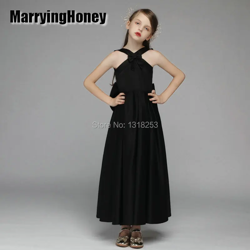 Длинное черное платье с цветочным узором на бретельках для девочек платья - купить