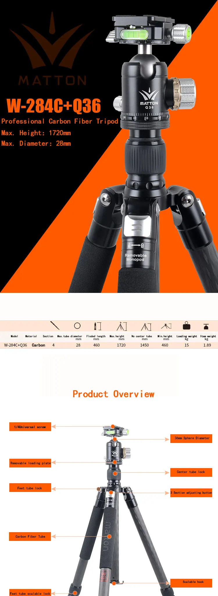 Matton W-284C + Q36 Pro углеродное волокно портативный 36 мм шар диаметром шаровая Головка и - купить