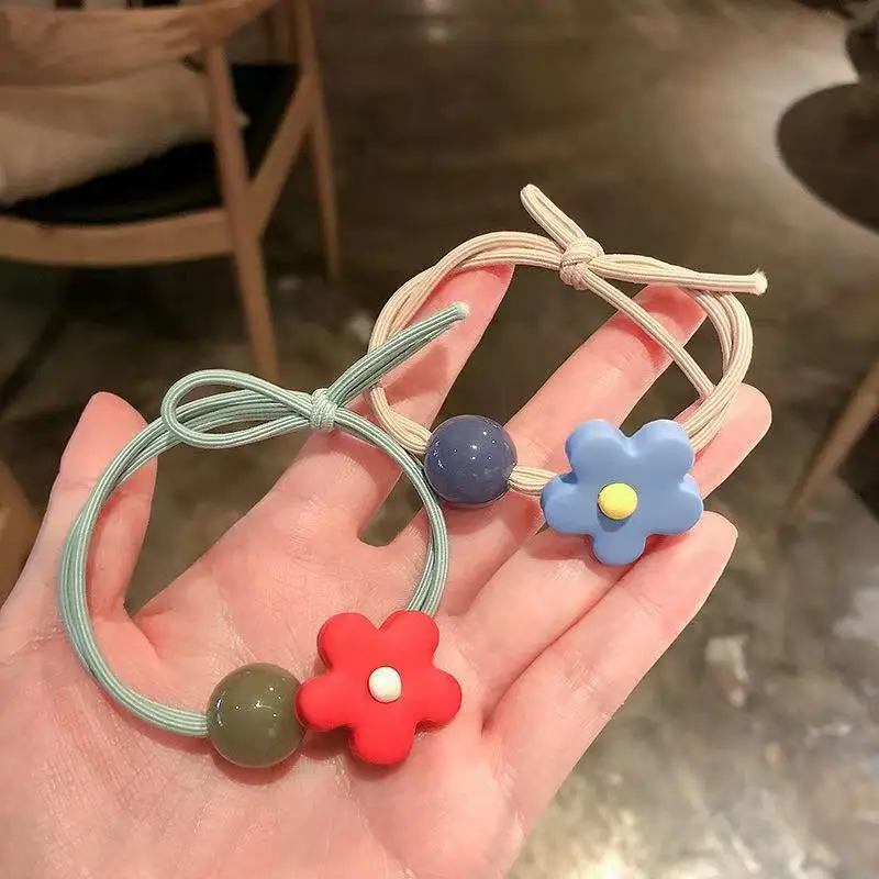Модная Цветочная резинка для волос Корейская версия цветного Кольца с бусинами - купить