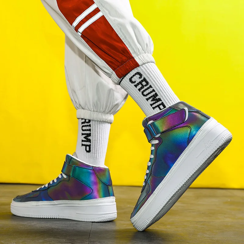 Кроссовки мужские на высокой платформе блестящие светоотражающие толстая - купить