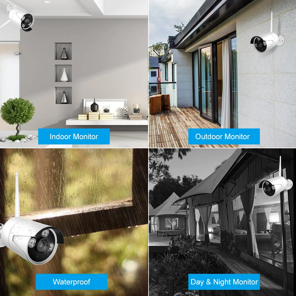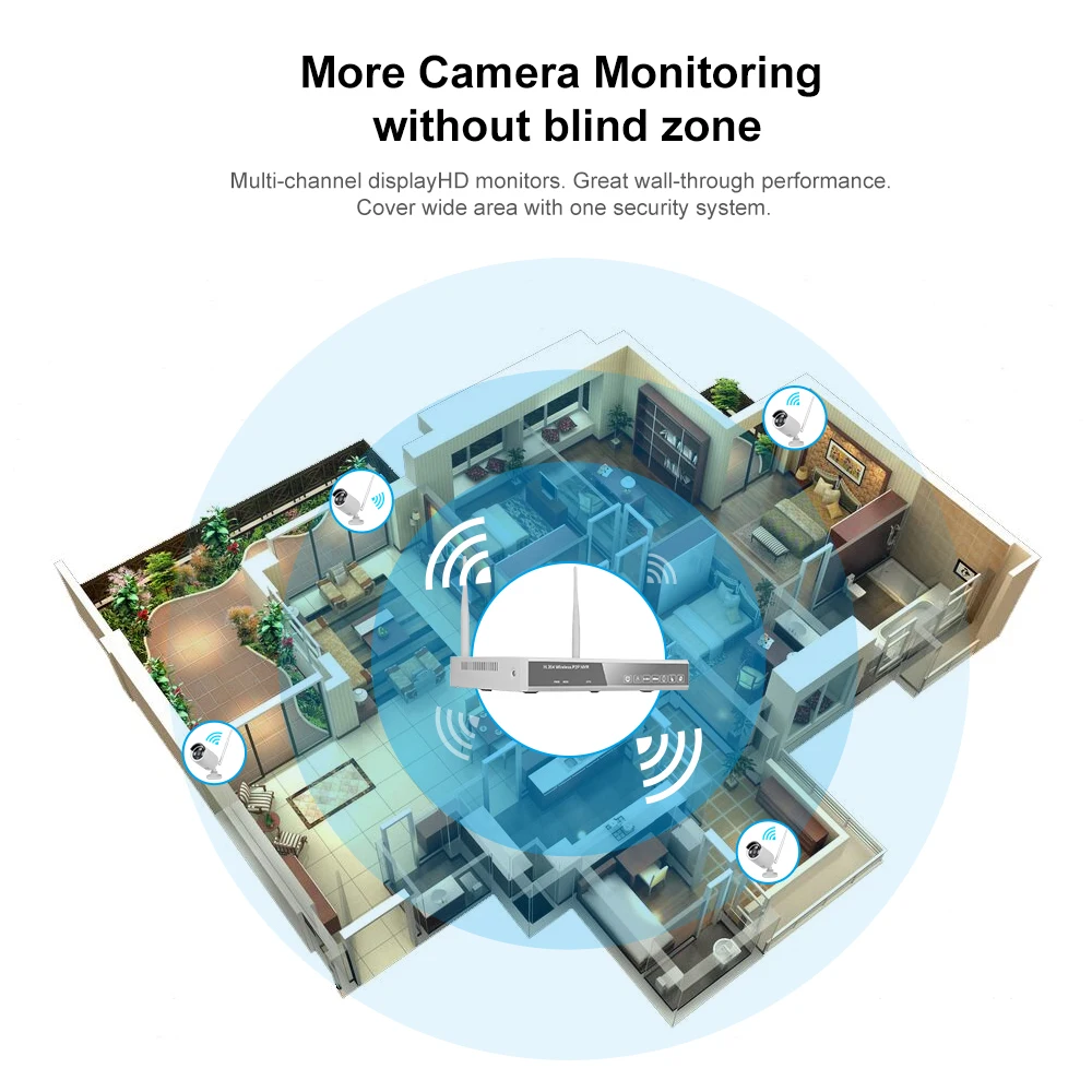 Купить Wireless NVR Kit 8CH 4 Cameras Security Surveillance System 2MP 1080P WIFI Camera Monitor P2P Motion Detection | Безопасность и