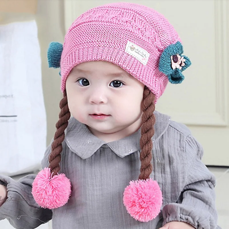 Отзывы о Милая детская зимняя теплая вязаная крючком Шапка-бини с париками и помпоном