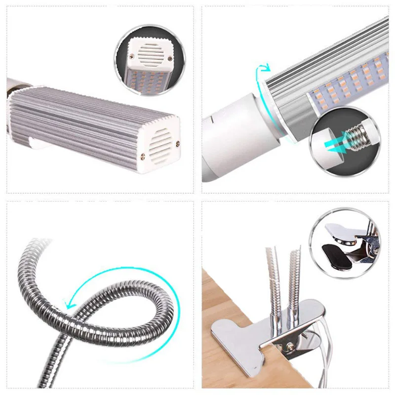 Поворачивающаяся на 270 градусов лампочка и двухголовая Гибкая на 360 градусов гусиная шея из нержавеющей стали, которая может легко регулировать угол и расстояние между светильник и растениями.