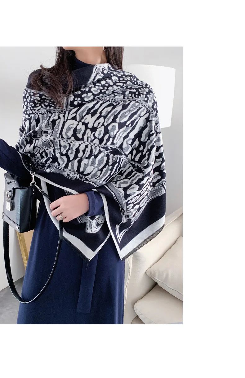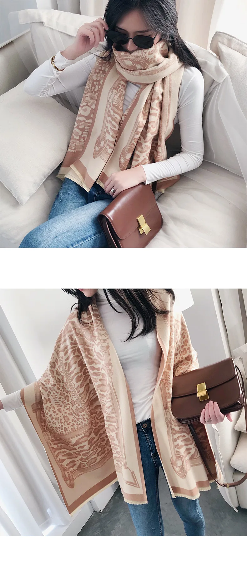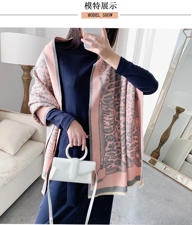 Женский зимний кашемировый шарф, теплые шали и накидки с леопардовым принтом, уплотненные накидки из пашмины, 2019