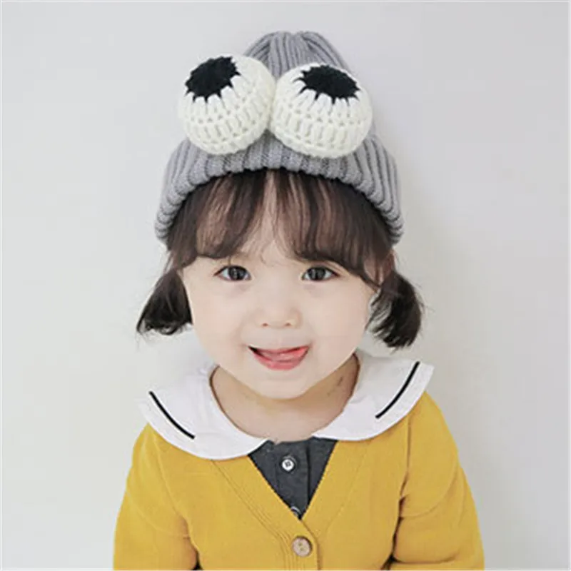 Отзывы о 2019 Winter Cute Cartoon Big Eyes Children Hats Unisex Girls Boys Keep Warm Gray Beanies Kids Knitted Cap Аксессуары для одежды