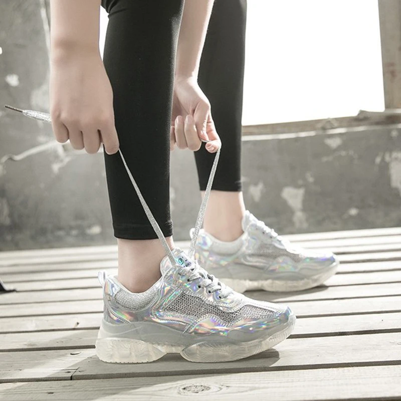 MoneRffi прозрачные Кроссовки Женская Блестящая обувь с кристаллами Лазерная на - купить