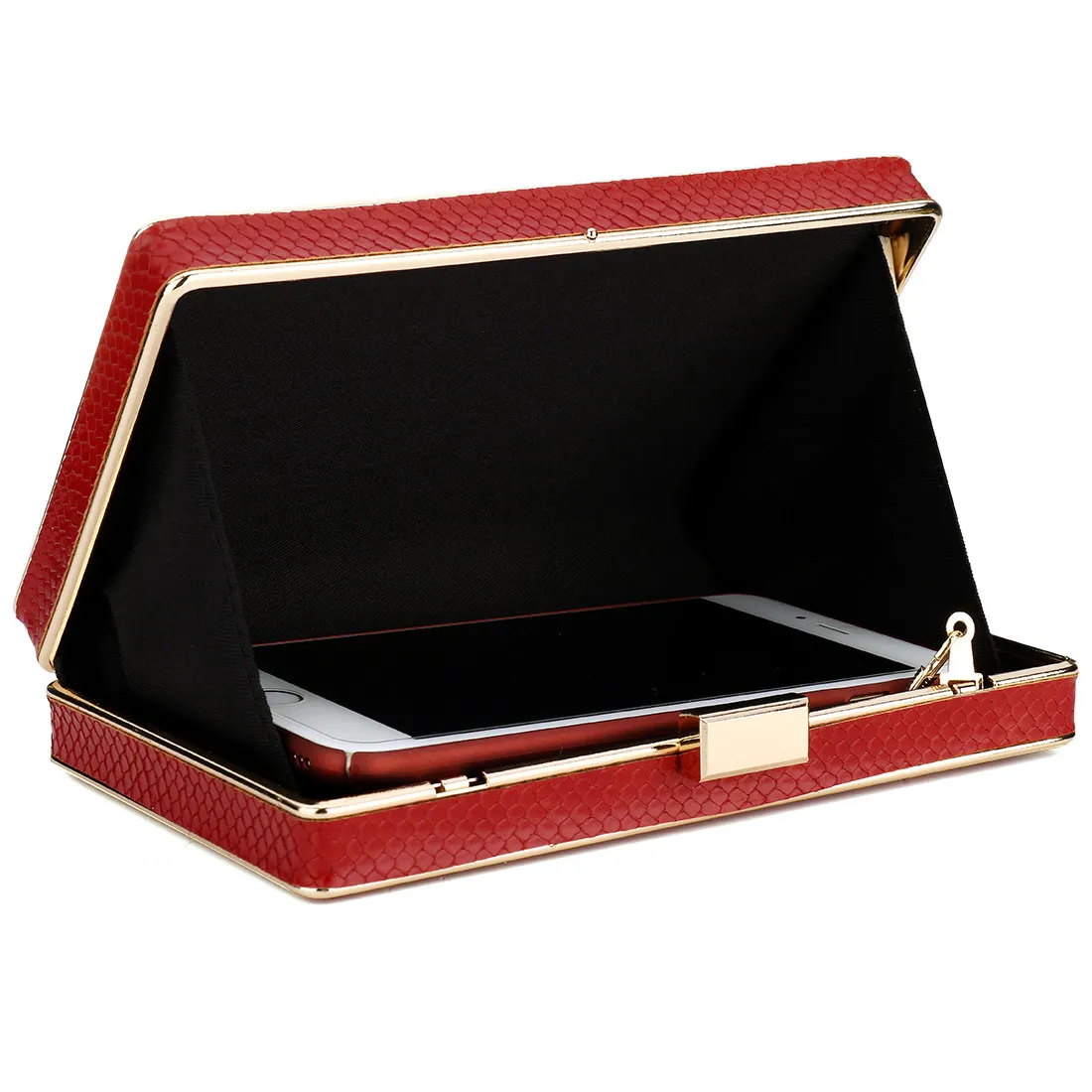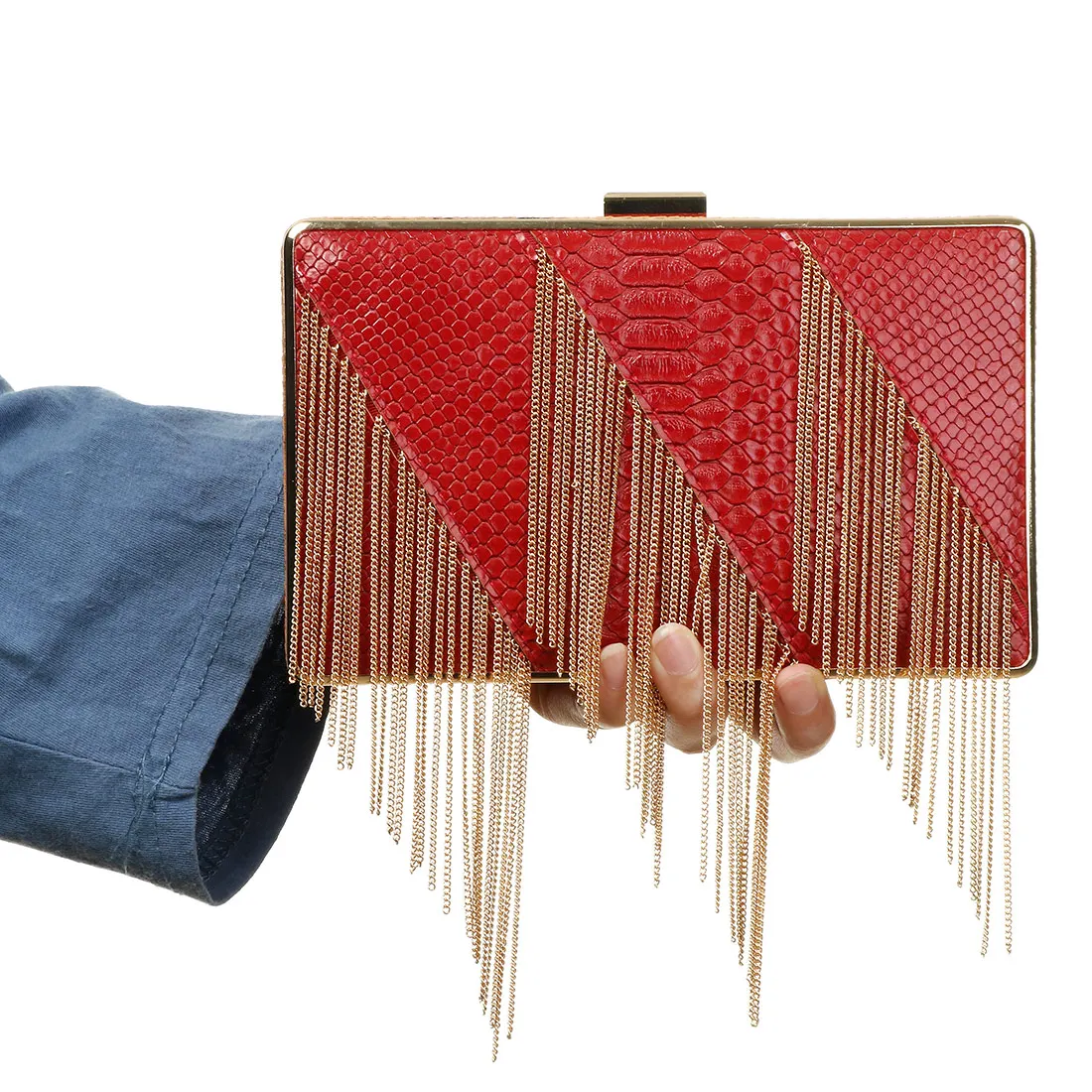 Красный Модный кожаный клатч с цепочкой, прямоугольные клатчи