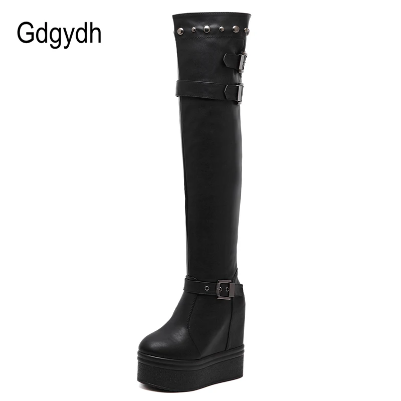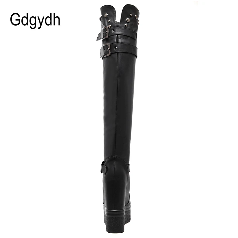 Купить Gdgydh/модные женские ботфорты на платформе с пряжкой пикантные черные высокие