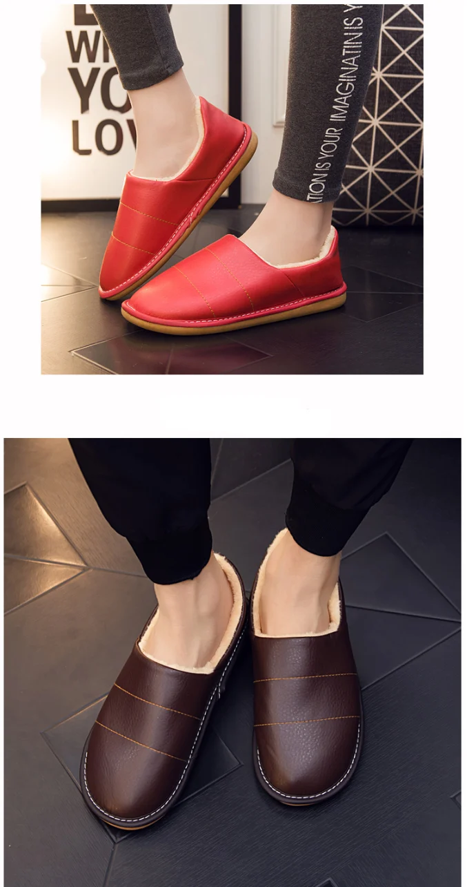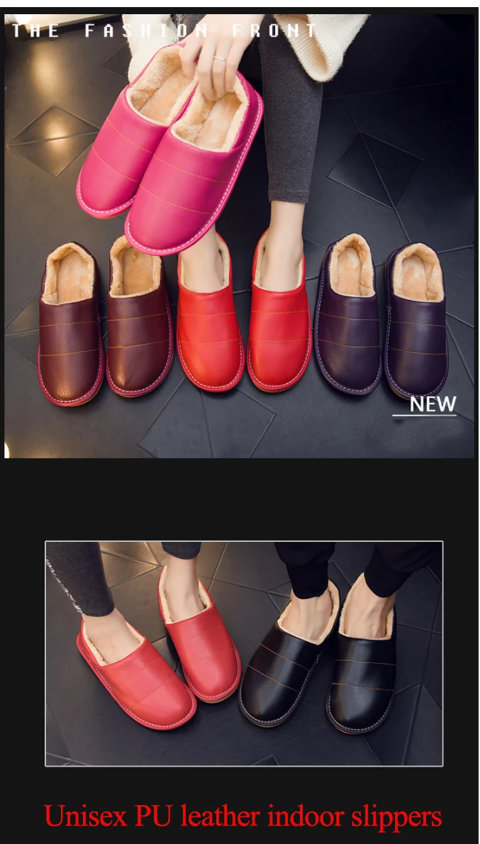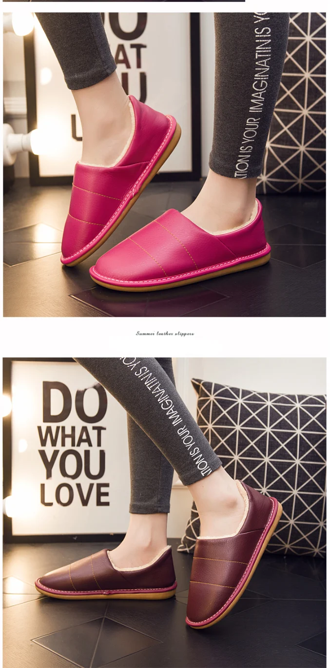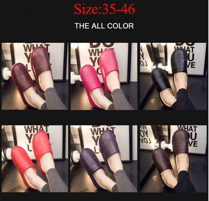 Отзывы о Кожаные тапочки для женщин домашняя обувь плюшевые меховые женские домашние с